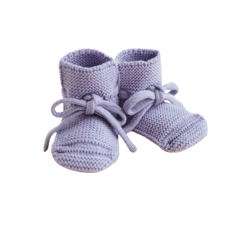 Knitted from 100% extra-fine Italian merino wool, they're warm, breathable, and soft for sensitive skin. A handy drawstring keeps them secure โ perfect for little wiggly feet.