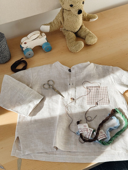 ✨ Inclusief stoffenpatches uit Lalaby-reststoffen (blue check, blue gingham & mini check)